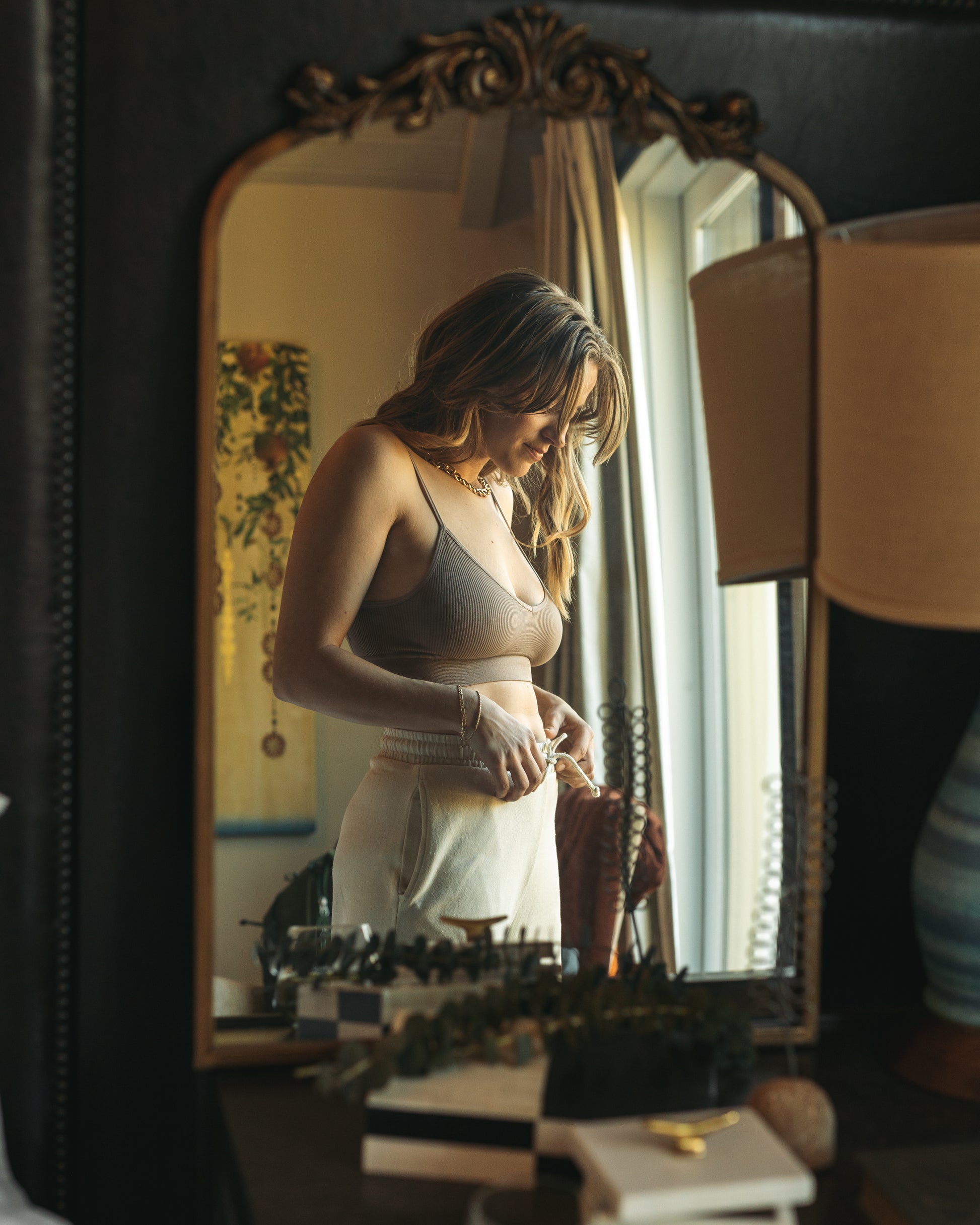 This bralette is flattering to all shapes and sizes. The soft and stretchy fabric will form to your body and create the most complimentary shape. Let's face is wired bras are so uncomfortable, so lets get comfortable in this seamless bralette that still holds it all in. The low back adds for the perfect touch of allure.