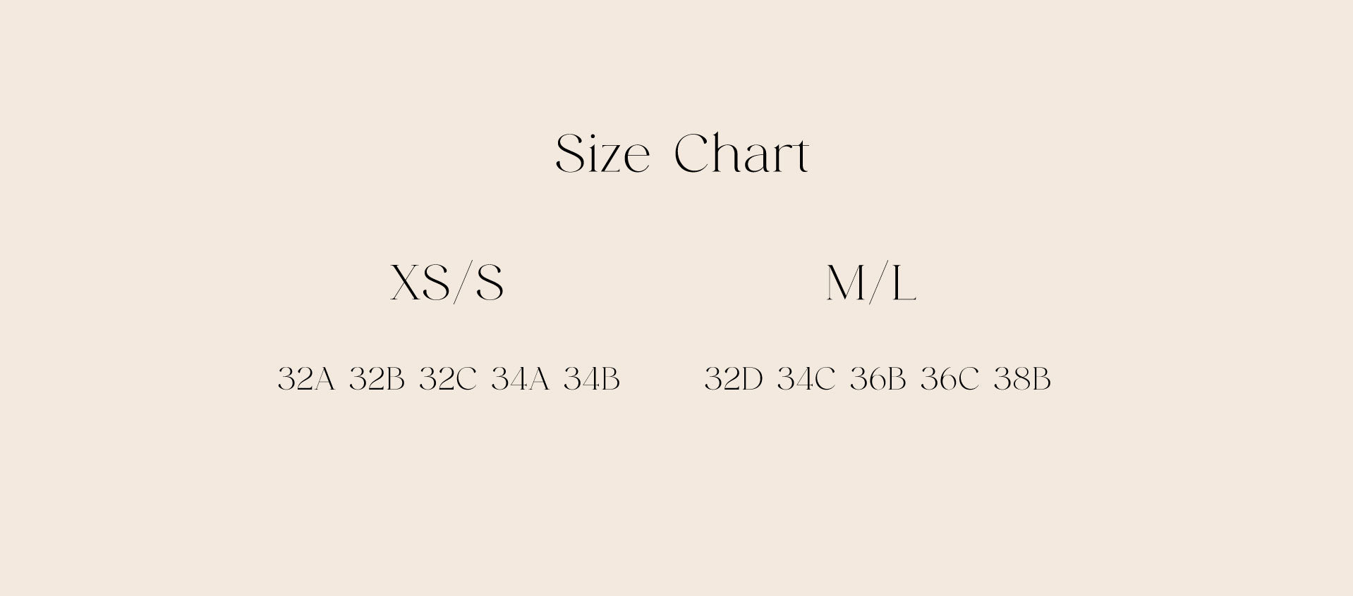 Sizing Info: Cup Size Fit XS/S: 32A 32B 32C 34A 34B M/L: 32D 34C 36B 36C 38B